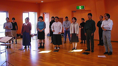 本番前のリハーサル。今回はコンクールだけあって発声練習からみんな真剣。