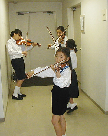 楽屋通路の隅で練習しているかぶらフィルハーモニー管弦楽団ジュニアメンバーの子供たち。将来かぶらフィルが大きくなったとき、その主要メンバーとして活躍できるようにという大人の思惑を知ってか知らずか、素直に練習を続ける子供達を見て、ぜひ応援し続けてゆきたいと思わされました。