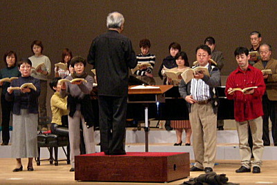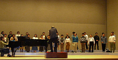 ホールでのリハーサル。T部のコルス・フローレスが今回取り組んだのは日本歌曲。歌詞の意味が捉えやすく感情も入ります。