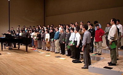 たっぷり時間をとってあったはずなのに、あっという間という感のあったリハでした。しかし二団体約70名が並ぶと響きも見た目も壮観です。