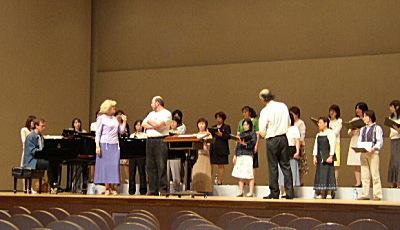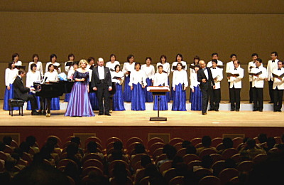 リハーサル。バリトンのジバエードフさんとは、第9回定演をはじめ何度か一緒に練習しており、お互いにお馴染みの感じ。ソプラノのシャーリナさんとは今回初めてのステージ。何度も練習を繰り返したり、合唱団にも要求を出したり、音楽に前向きな姿勢に合唱も緊張感が高まりました。お二人とも、こちらが用意した日本人が編曲した曲を、しっかり暗譜してこられたのには脱帽でした。