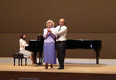 指揮者とシャーリナさんとの重唱「メリー・ウイドウ・ワルツ」。本番でやり損ねた、手を取り合って踊る演出の絵です。